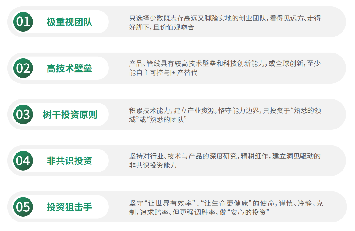 围绕信熹的使命、愿景、价值观,坚持工作方法论,我们严格执行“信熹投资金标准”、“信熹不为清单”、“信熹曲线”等策略,做好“硬科技投资狙击手”。